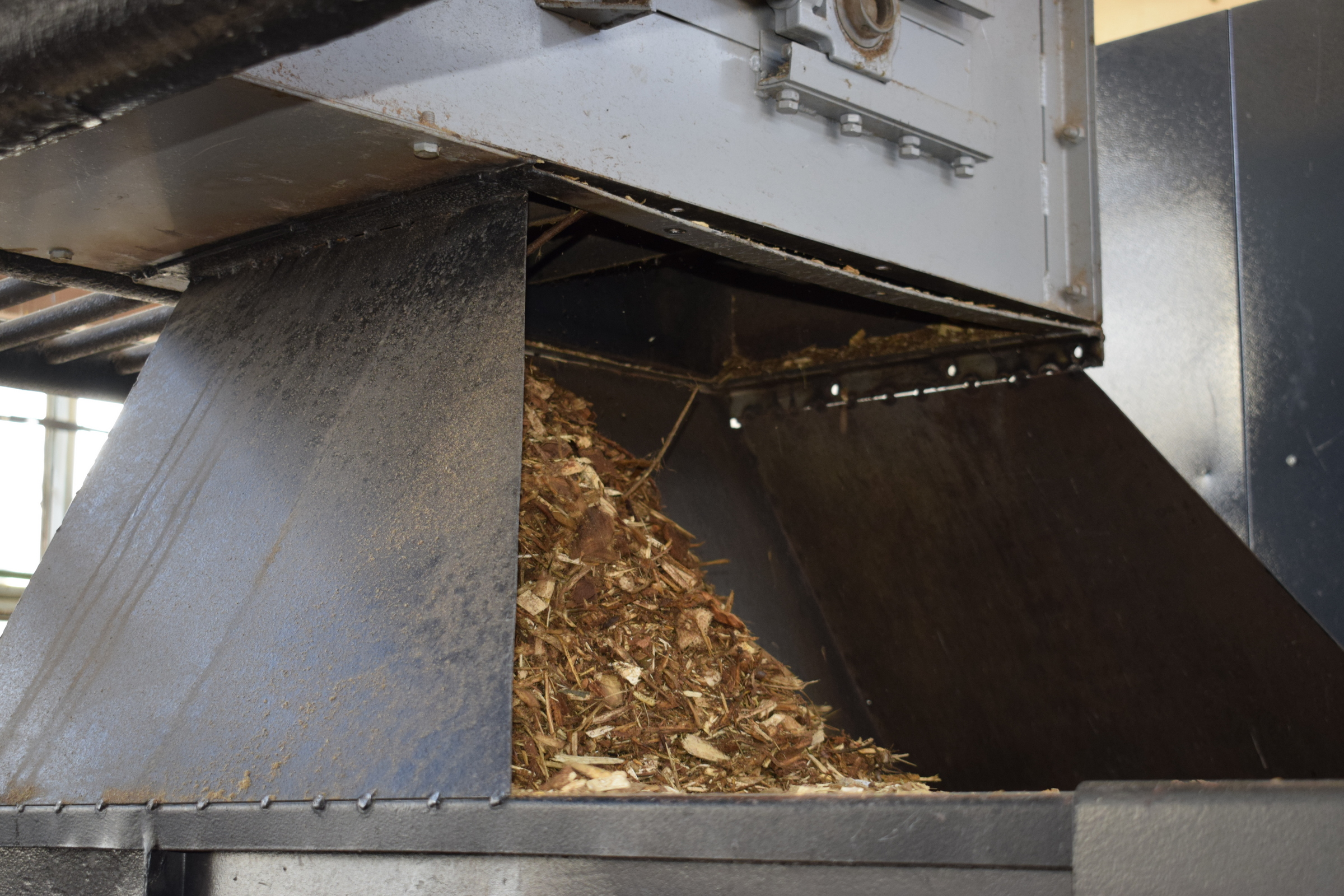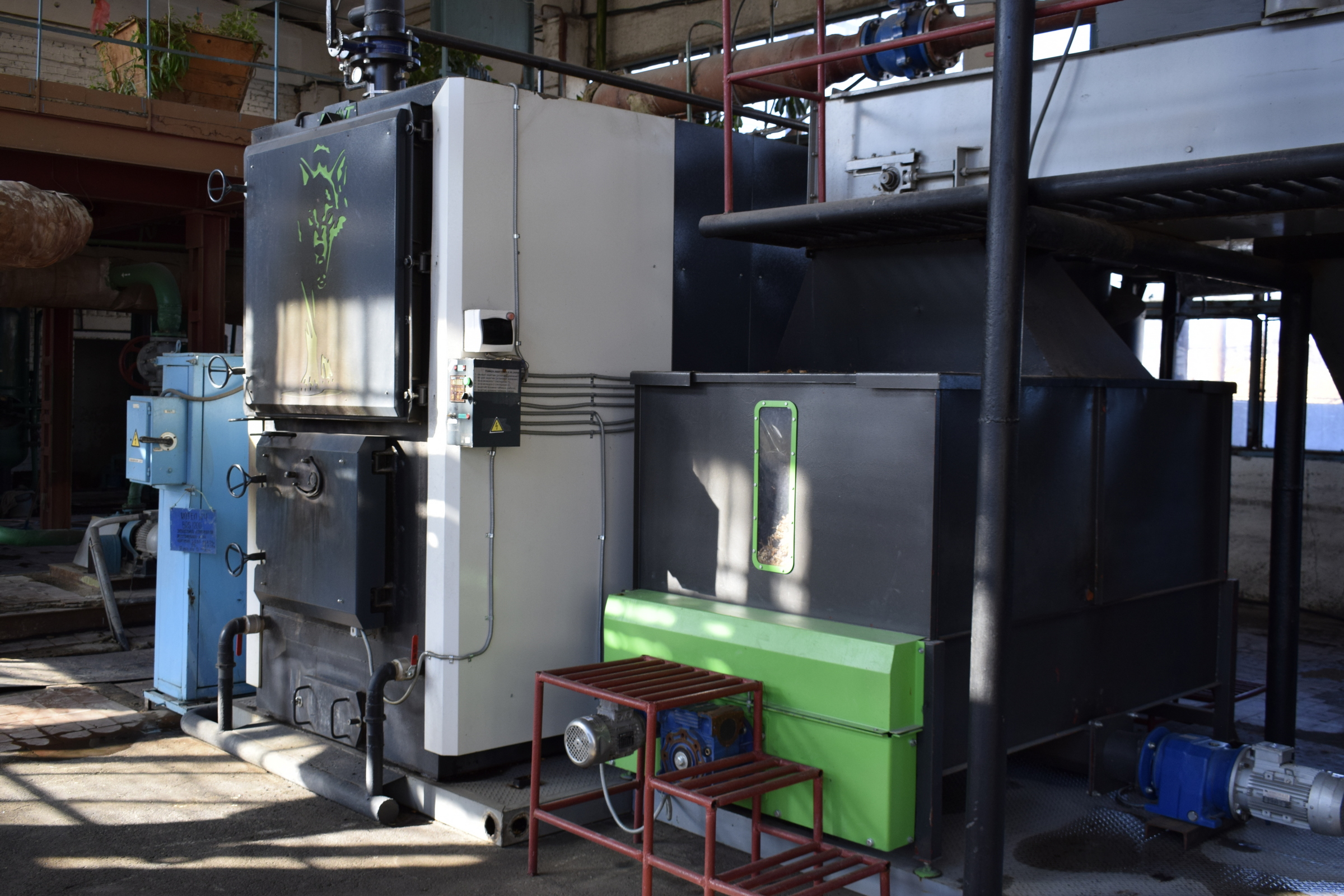 На фото: твердопаливні котли на щепі з автоматичною подачею; складування і зберігання тріски паливної
